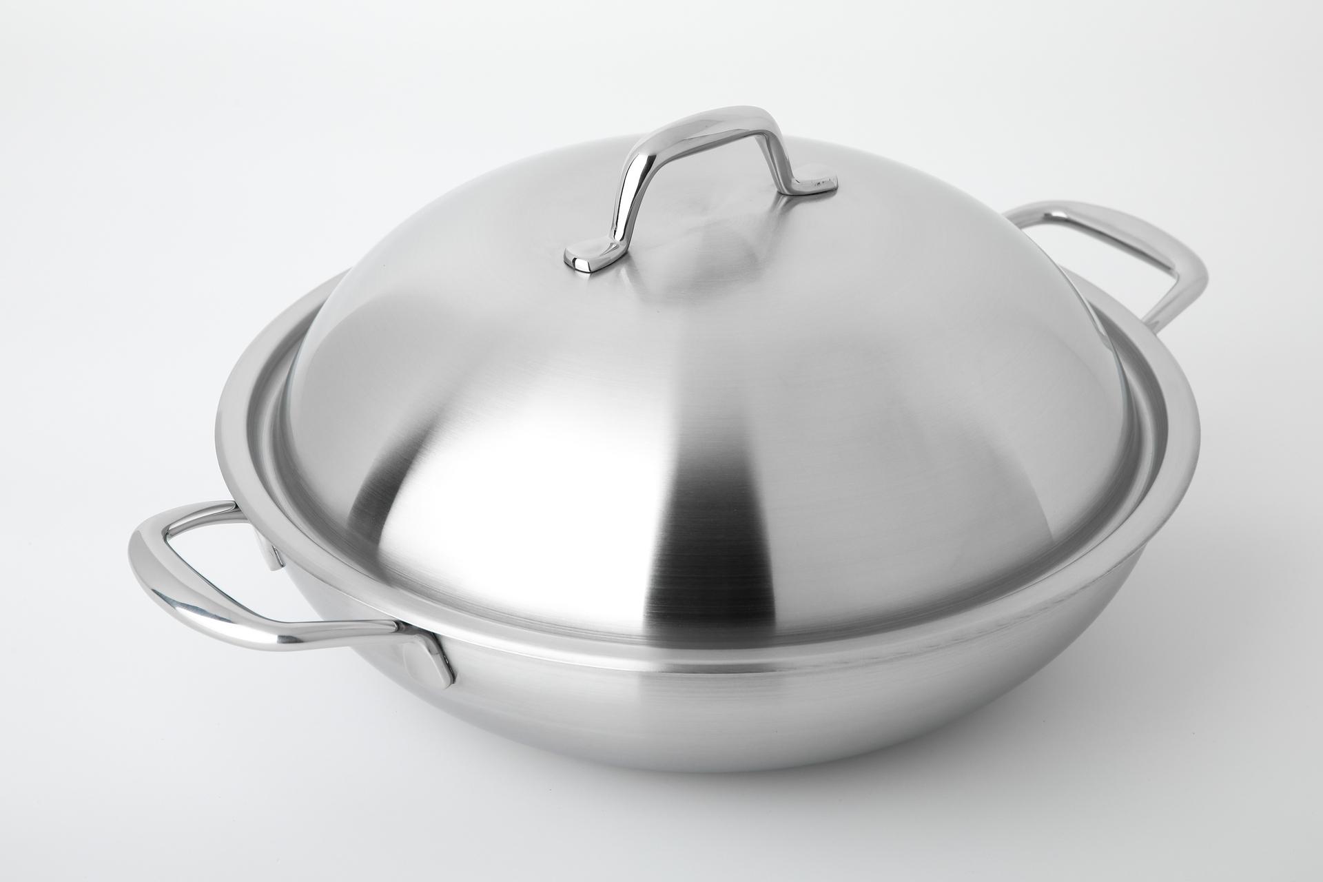 1)優質不鏽鋼,抗腐蝕性強、堅硬無比、非常耐用。 2)三層無縫鍋身結構:采用無縫設計的三層結構鍋身,以兩層不銹鋼夾著中間的極厚鋁層,保証傳熱迅速及熱力均勻 3)磁性不銹鋼外層 ,適用於各種爐具包括電磁爐;極厚鋁層:快速傳熱,熱力均勻;食品級不銹鋼內層:接觸食物無化學反應 4)由於極厚鋁層全面覆蓋鍋身,利用鋁金屬傳熱快速的特性,即使火力在底部加熱,亦能夠快速及均勻地傳遞到整個鍋身。令食材保持在同一溫度下烹調,不會令部分食材過熟或部分食材過生。 5)蝕刻納米紋設計成一個高低層表面紋路,大量減少與食材的接觸面,在煮食過程中,油在沸騰後會產生一層氣膜,從而將食材與鍋分隔開來而實現不粘,因此即使用極少量的油亦能達到少油烹調及健康煮食。 6)無鉚釘設計:方便清洗、不藏食物殘渣 7)高低層蝕刻花紋結構,增加物理不黏性能,做到絕佳不黏效果。 8)適合各類型煮食爐,包括電磁爐。