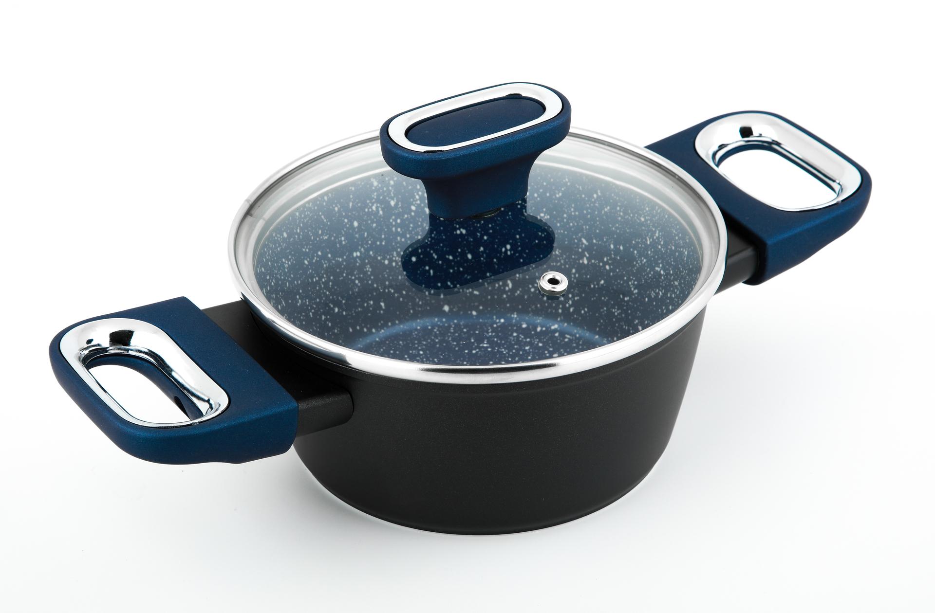 1)MARBURG+ 系列烹飪廚具以實用性見稱, 內鍋表面有一層獨特的大理石紋理塗層,只需極少量食油就能減少食物黏底的機會,達到健康烹飪的目標。 2)鍋身因此亦能快速清洗, 污漬輕鬆易甩, 節省時間。 3)塗層保証不含化學物質PFOA, 不對人體有害, 保証安全。 4)比起一般的塑膠, 電木手柄更加耐高溫最高承受180˚C, 而且能夠砌底去除熱力, 手柄特別地加入了柔軟的特質, 即使長時間使用, 仍然能保持舒適的手感。 5)鍋身使用了仿壓鑄的製造工藝, 好處是鍋身較堅固、受熱均勻, 亦不易變形。 14)此系列烹飪廚具適用於各類型煮食爐,包括電磁爐。