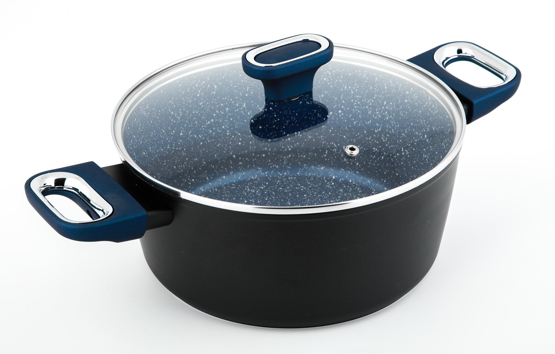 1)MARBURG+ 系列烹飪廚具以實用性見稱, 內鍋表面有一層獨特的大理石紋理塗層,只需極少量食油就能減少食物黏底的機會,達到健康烹飪的目標。 2)鍋身因此亦能快速清洗, 污漬輕鬆易甩, 節省時間。 3)塗層保証不含化學物質PFOA, 不對人體有害, 保証安全。 4)比起一般的塑膠, 電木手柄更加耐高溫最高承受180˚C, 而且能夠砌底去除熱力, 手柄特別地加入了柔軟的特質, 即使長時間使用, 仍然能保持舒適的手感。 5)鍋身使用了仿壓鑄的製造工藝, 好處是鍋身較堅固、受熱均勻, 亦不易變形。 15)此系列烹飪廚具適用於各類型煮食爐,包括電磁爐。
