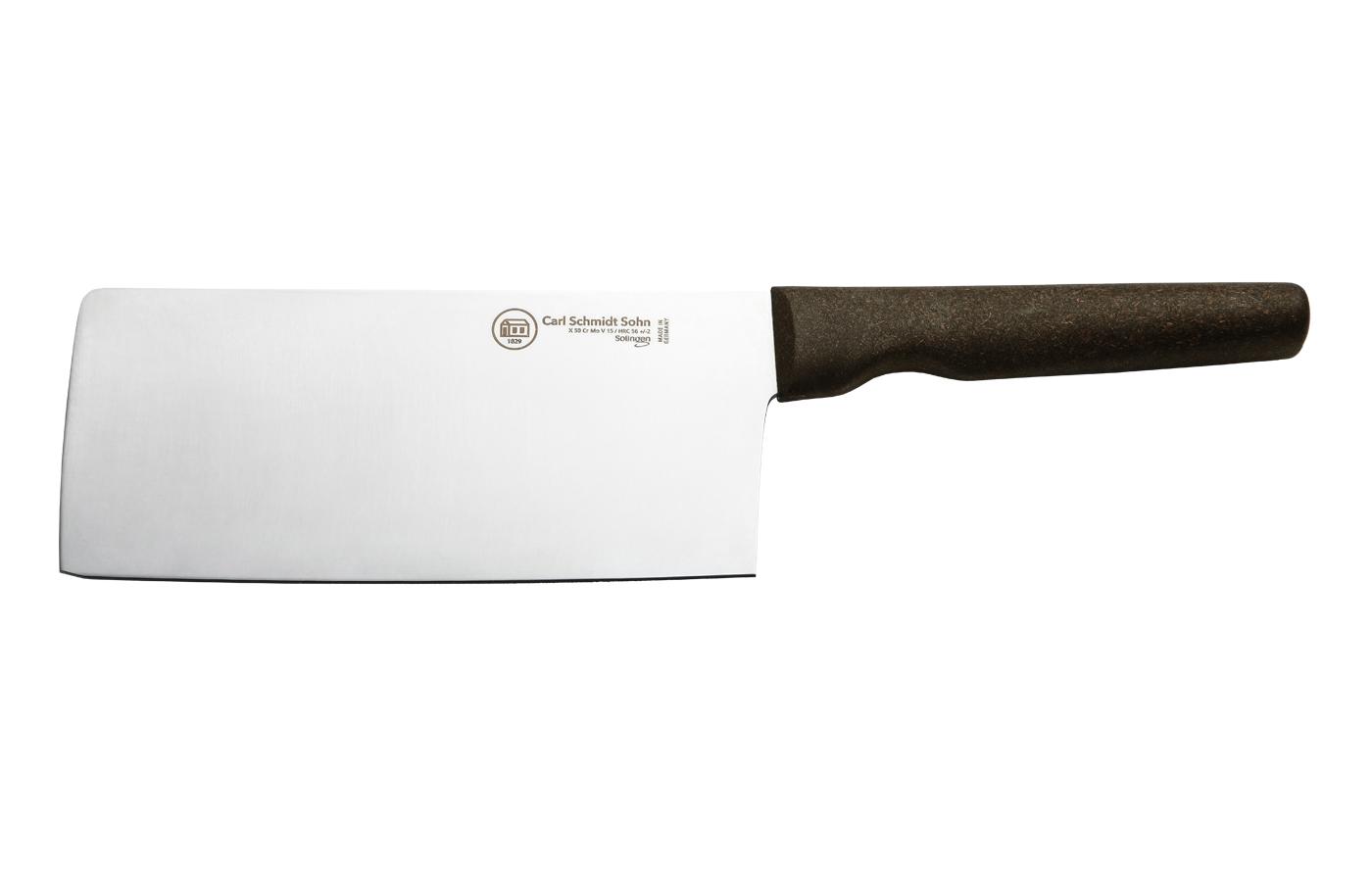 1) KÖLN 刀具由德國索林根城市的不銹鋼材料製成, 刀片采用高品質材料X50 CrMoV15 HRC56+/-2 2) 手柄設計精巧,配有符合人体工程学形状的黑色把手,略呈圆形,握感舒适,握力極佳。 3)握把由天然椰子材料製成 4)刀刃亦經過精心設計並鍛造製成,刀鋒鋒利 5)容易清洗