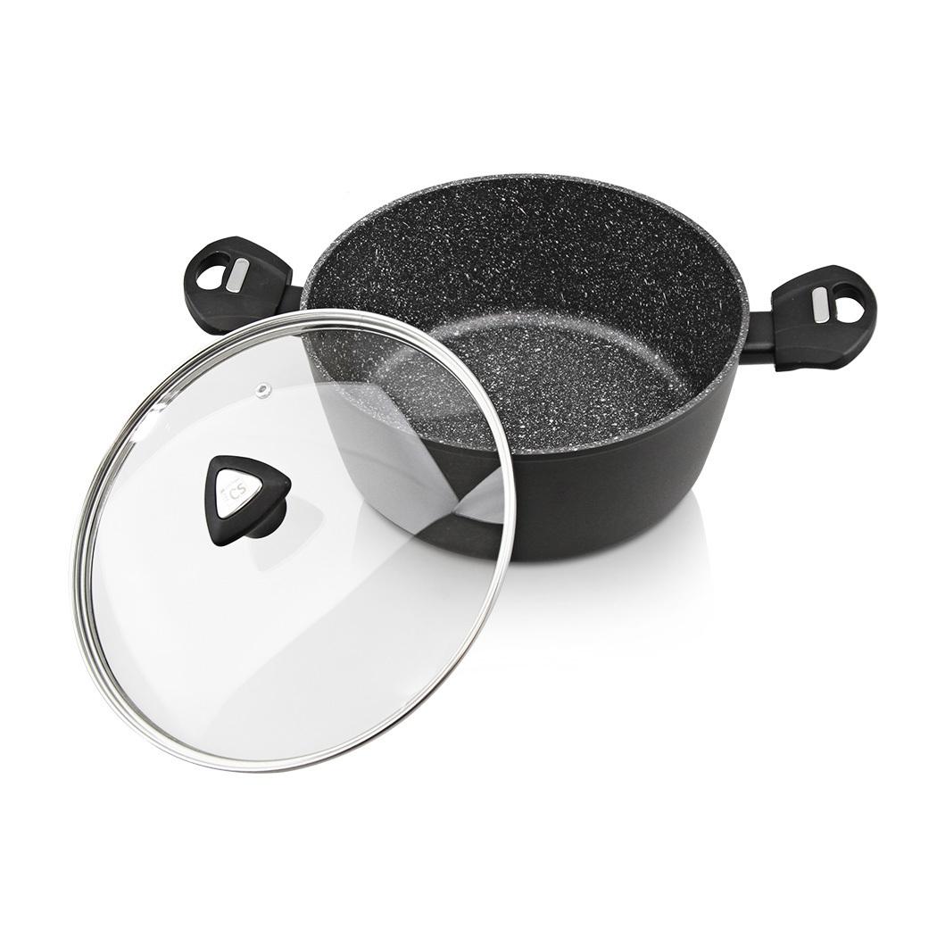 MARBURG 系列炊具以其實用性而廣為人知。鍋的內部表面有獨特 的大理石紋理塗層。烹飪只需要少量的食用油,並實現健康烹飪的目 標。因此,罐體可以快速清潔,節省時間。該塗層保證它不含全氟辛烷 磺酸化學物質,對人體無害,並保證安全。與普通塑膠相比,烤石手柄 對高達 180°C (357°F) 的高溫更具耐性,可用於去除鍋中的熱量。手柄 特別添加柔軟的紋理,即使在長期使用后,它們仍然可以保持舒適的感 覺。鍋體採用鍛造的製造工藝,優點是鍋體更強,熱量均勻,且不易變 形。該系列的炊具適用於所有類型的爐灶,包括感應。洗碗機安全。