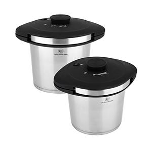 省時節源且安全,健康烹飪樂團圓! 1) 榮獲多項設計獎: 包括德國設計獎、iF產品設計獎、美國傑出工業設計獎、香港智營設計大賞等。 2) 旋轉鈕設針,簡易開關,不用對位,單手一按即開,單手壓力調節。釋放你的雙手,令烹飪變得更加輕鬆簡單。 3) 優質不銹鋼: 採用304食品級不銹鋼製造,堅固耐用,容易清洗。 4) 多重壓力調節: 擁有兩級壓力調節, 60kPa 壓力適合烹調蔬菜類, 90kPa 壓力適合肉類或豆類的快速烹調。 5) 八重安全設計 : 確保烹飪時能夠穩定易用、絕對安全和防止誤操作。 6) 品質驗證: 符合不同國家的檢測機構認證,包括較高規格的德國產品安全認證。 7) 節省時間: 比起一般湯鍋節省多於70% 烹飪時間, 隨著壓力煲內的壓力升起,內裡溫度亦會高於100°C ,令食物加速烹調完成。 8) 節省能源: 當煲內壓力已經升起,可調低火力,可節省能源和金錢。 9) 額外配件: 附送蒸籠、蒸架配件,可實現一煲多煮,上蒸下煮,同時烹飪幾道菜!
