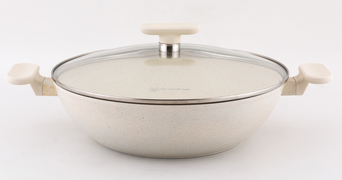 32*9.5cm壓花雙耳鋁炒鍋帶蓋