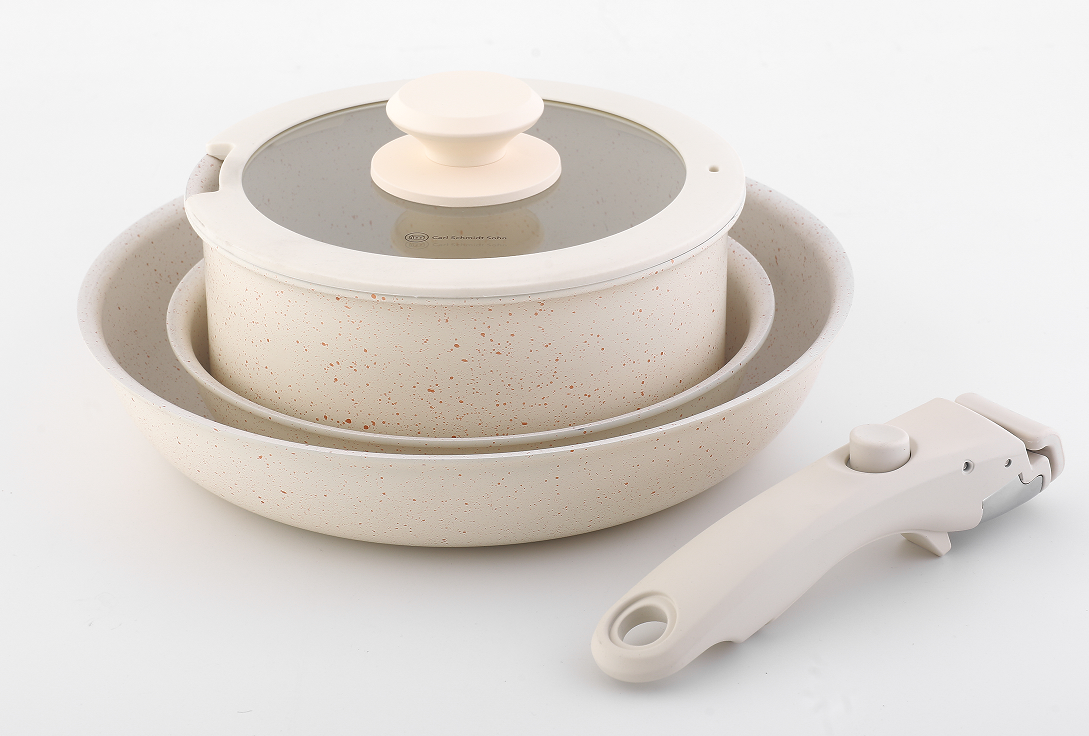 奶白色撒金點可拆手柄五件套